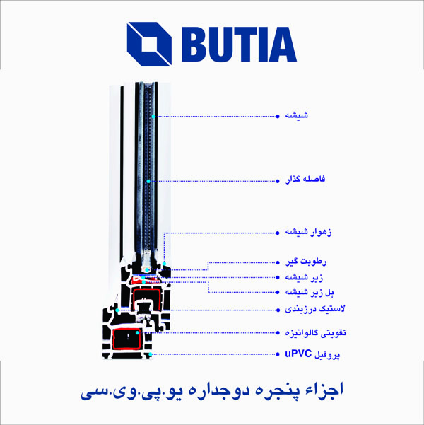 اجزاء پنجره دوجداره یو پی وی سی سیستم لولایی